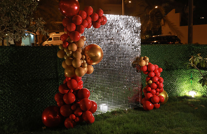 - خلفية الفسيفساء مع بالونات قابلة للتحلل بطول ٣ متر