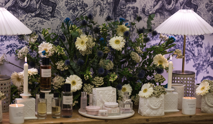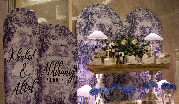 - طاولة خشبية يتم تنسيقها بالورد الطبيعي.