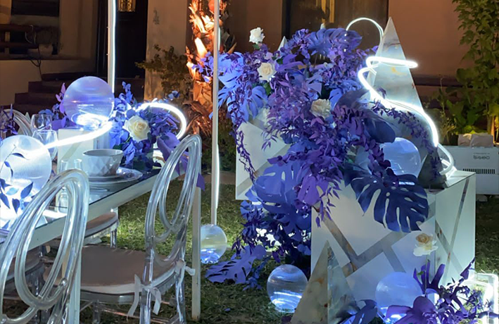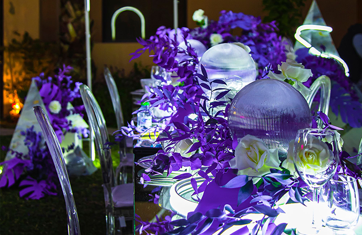 - تنسيق طاوله العشاء : اللون البنفسجي والاوفوايت بطريقة عصرية