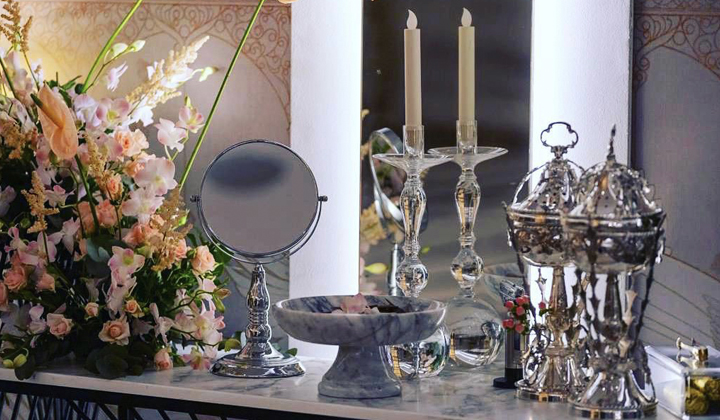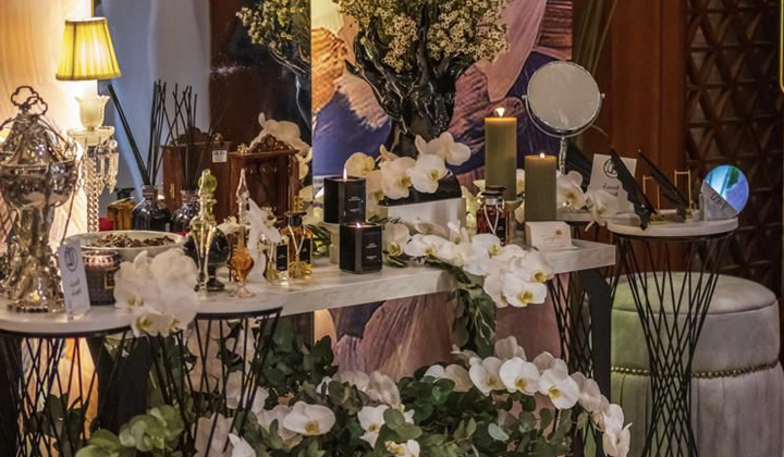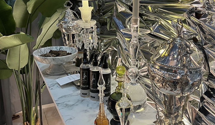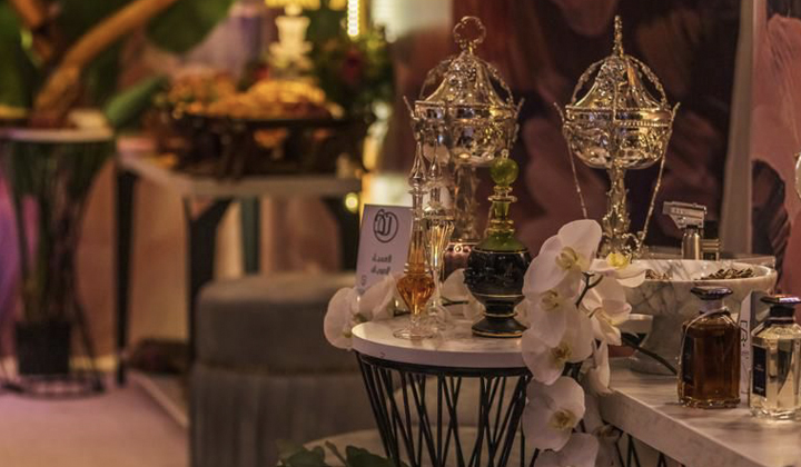 - ركن يحتوي على عطور : ماركة أصلية ، بخور هندي نوع فاخر، عود مسقى ، فواحات عطرية ، شموع معطرة ، اكسسوارات ، ورد طبيعي ، عطورات عربية ، دهن عود ، مسك ، مخلط زعفران ، طاولة استقبال وملحقاتها للتأجير المؤقت .