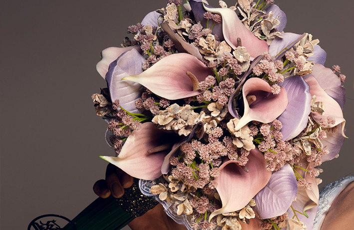 - مسكة مصممة من الورد الصناعي ، من تنسيق المصمم عمر الريس .
