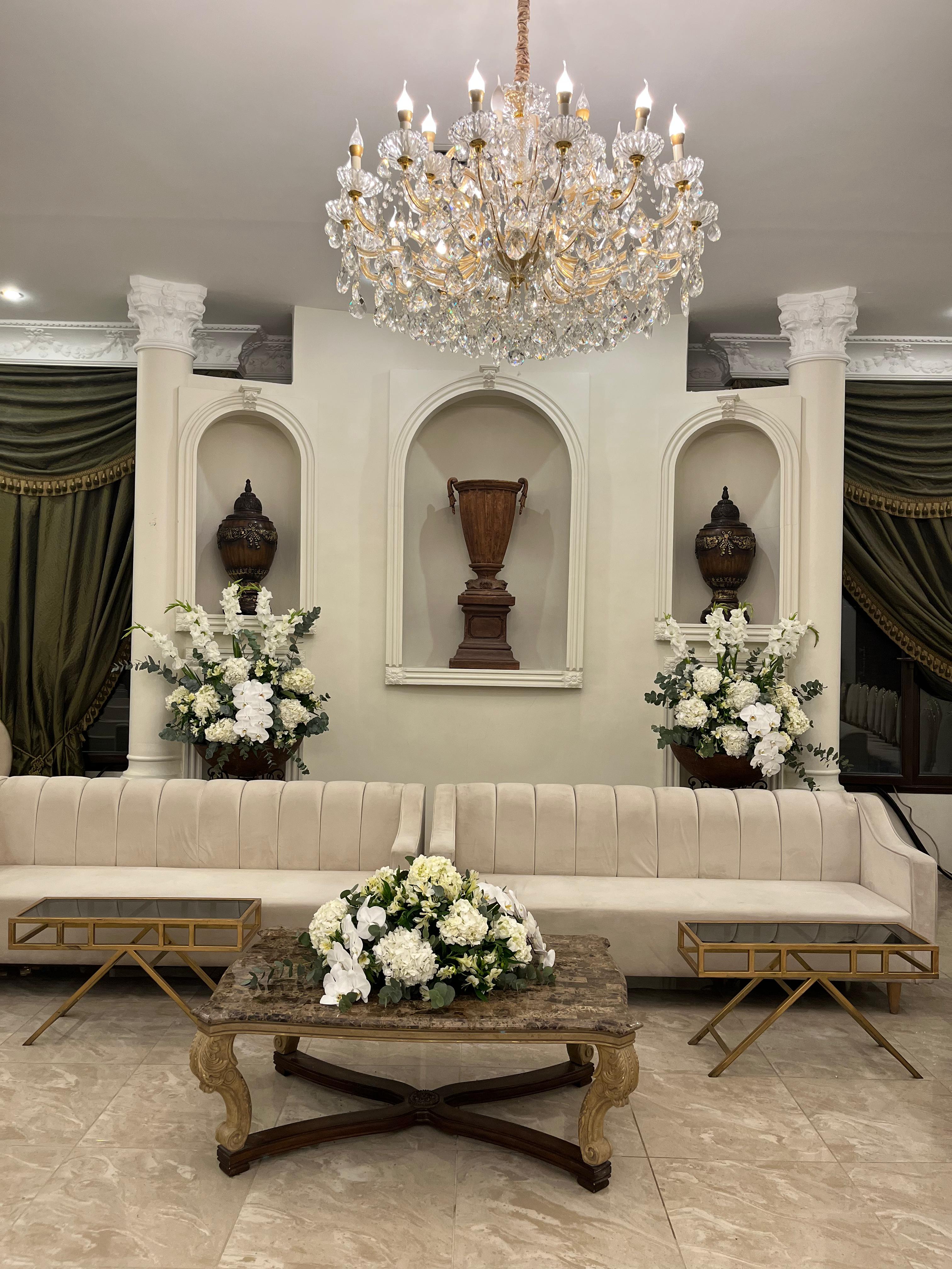 وصف الخدمة : لمسة من الفخامة تزين لحظة العمر. يتم تنسيق الزهور بعناية لتتناسب مع أجواء عقد القران، بألوان ناعمة وتصاميم راقية تضيف سحرًا للمكان وتعكس طابع المناسبة المميز. تنسيق يجمع بين البساطة والأناقة ليجعل لحظتك أكثر جمالًا وبهجة.