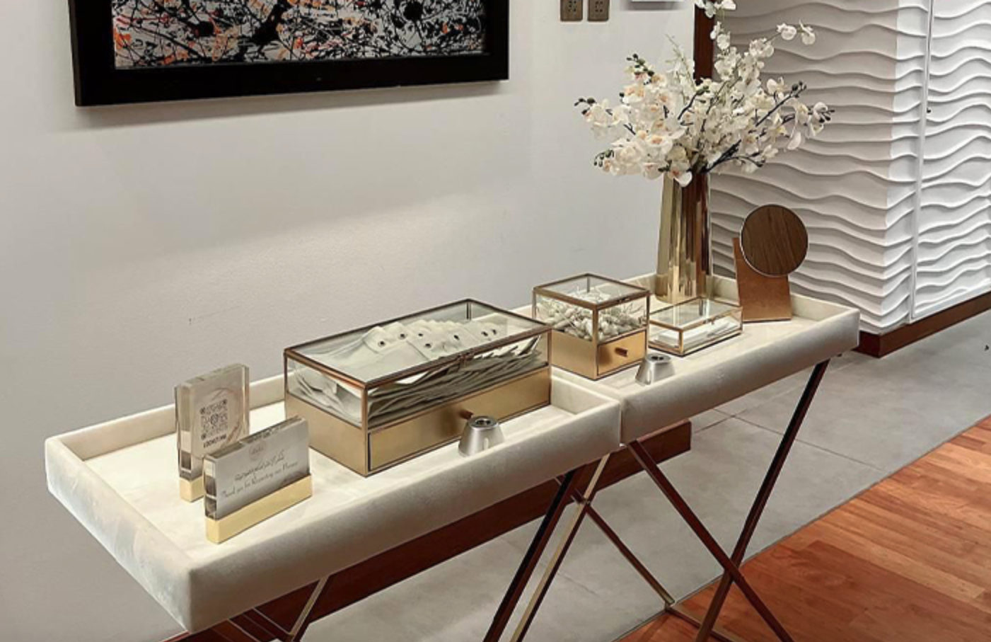 كما تتضمن الخدمة تبخير الضيوف عند الوصول لإضفاء لمسة فاخرة تعبّر عن الكرم والأصالة وتكمل أجواء الترحيب المميزة.
