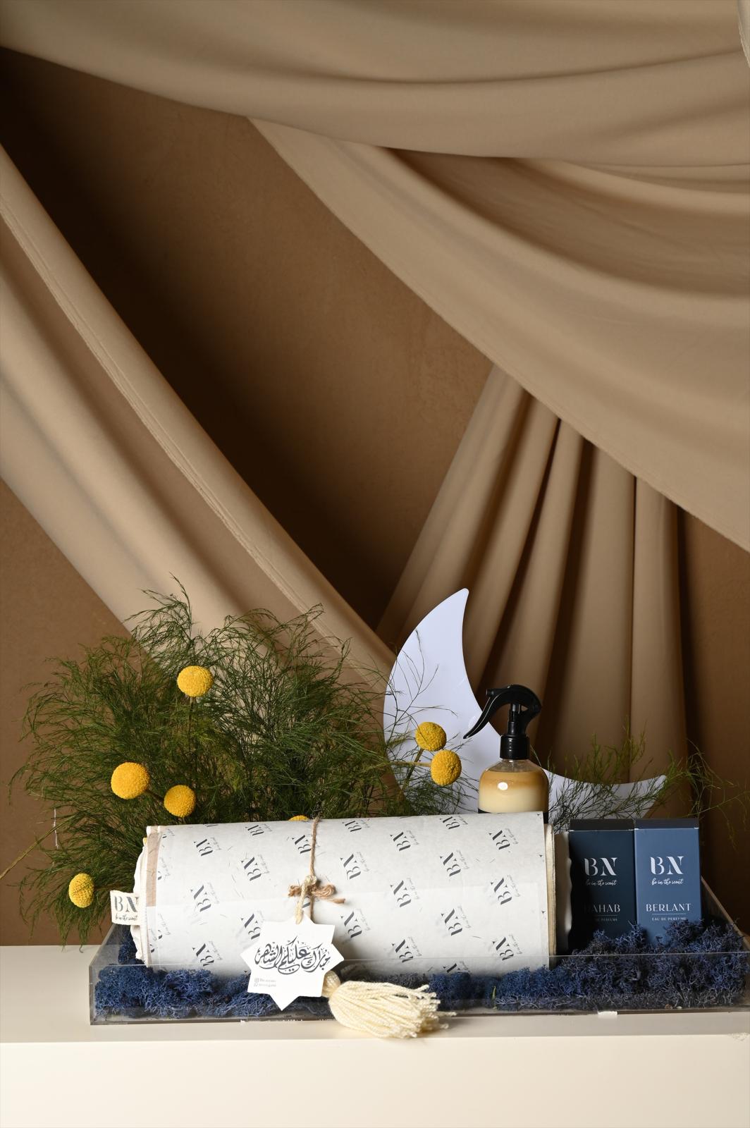 نقصة رمضانية أنيقة تجمع بين طقم صلاة وعطور فخمة ولمسات ناعمة تعطيها شكل راقي. هدية حلوة لرمضان، تعكس أجواء الشهر وتناسب الزيارات والمناسبات الرمضانية.