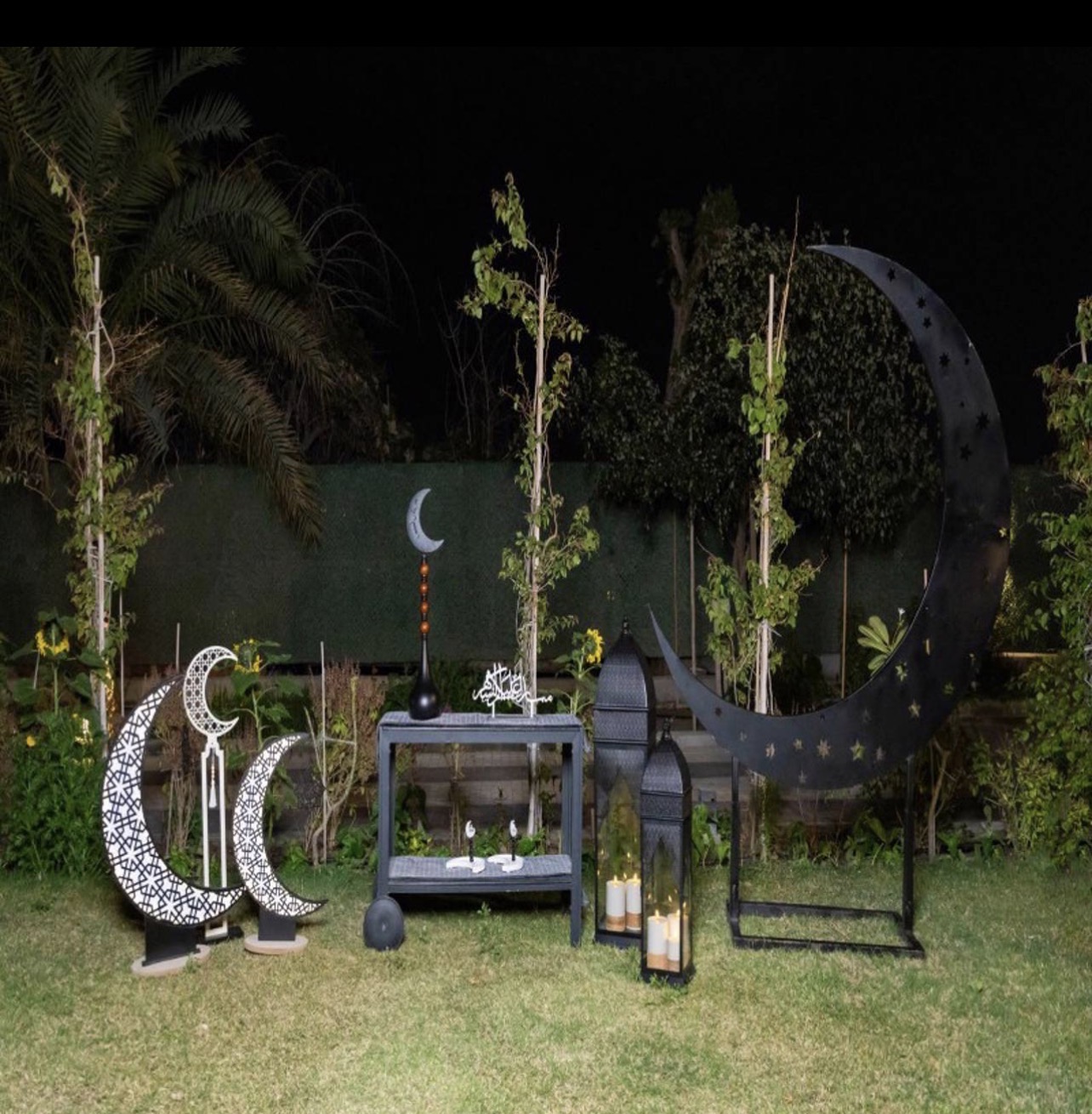 - ٢ مفرش طاولة ٢ هلال اضاءة باللونين الاسود والابيض